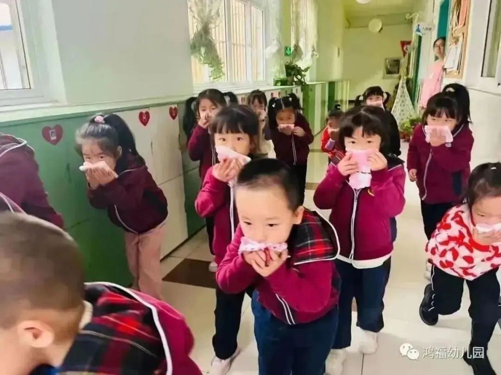 伴隨著警報聲的響起,消防演練正式開始。各班任課老師立刻停止教學,迅速組織幼兒沿安全逃生路線進行疏散,引導幼兒用濕毛巾捂住口鼻、沿墻角邊彎腰俯身、有序撤離。在疏散途中,孩子們行動敏捷,不搶道不慌張,秩序井然。