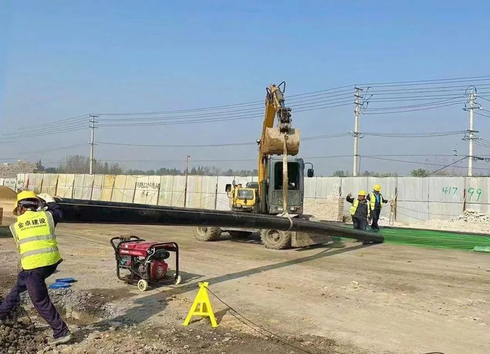 在揚(yáng)州中燃公司特許經(jīng)營范圍內(nèi)的鄉(xiāng)鎮(zhèn)中,僅剩余樸席鎮(zhèn)是通過“CNG瓶組站”方式供應(yīng)天然氣。為盡快實(shí)施樸席鎮(zhèn)畫舫小區(qū)瓶組站置換管道天然氣工作,揚(yáng)州中燃公司計(jì)劃隨揚(yáng)子津路西延建設(shè)同步敷設(shè)燃?xì)夤艿溃驌P(yáng)子津路西延先實(shí)施南半幅施工,而燃?xì)夤艿酪?guī)劃管位在道路北側(cè),先行進(jìn)場勢(shì)必影響道路后續(xù)的施工。揚(yáng)州中燃公司多次與市政建設(shè)處對(duì)接,聯(lián)合設(shè)計(jì)單位現(xiàn)場踏勘,確定各管線間水平及高程之間的關(guān)系,調(diào)整燃?xì)夤芪患笆┕し桨福?0月20日進(jìn)場施工,11月22日完成該段燃?xì)夤艿赖目⒐を?yàn)收投用,同步將畫舫小區(qū)瓶組站置換成管道天然氣。