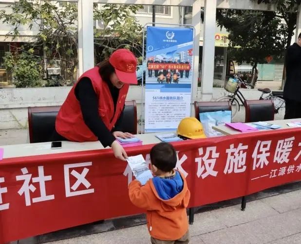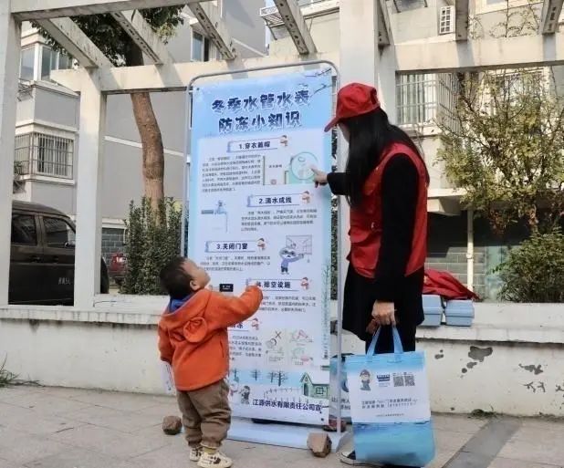 活動臨近尾聲,一位小朋友好奇的詢問現場的紅馬甲們:“你們在干嘛呀?” 冬季水管水表防凍小知識學習,要從娃娃抓起。吳留毅熱心地拿出防寒小冊子,遞給小朋友,告訴他記得帶回去給爸爸媽媽看看,隊員孔建華熱情地走到宣傳牌為場上最小的用戶答疑解惑。