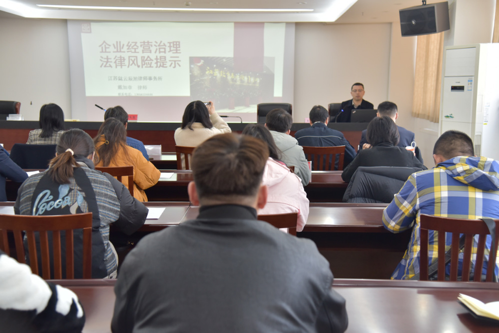 市司法局向長江水務發放了《問卷調查》,了解企業的法治需求和員工的法律知識水平,向長江水務代表贈送《中華人民共和國憲法》、《以案釋法漫畫民法典》等法律書籍資料,幫助企業了解和掌握合規經營的重要性;最后,由揚州市律師協會副會長、揚州市鋐云辰旭律師事務所主任戴加章主講“法治講堂”,對企業日常經營的合同簽訂、履行方面存在的問題、風險與防范進行專題輔導,就企業經營治理法律風險提供了專業建議和意見。