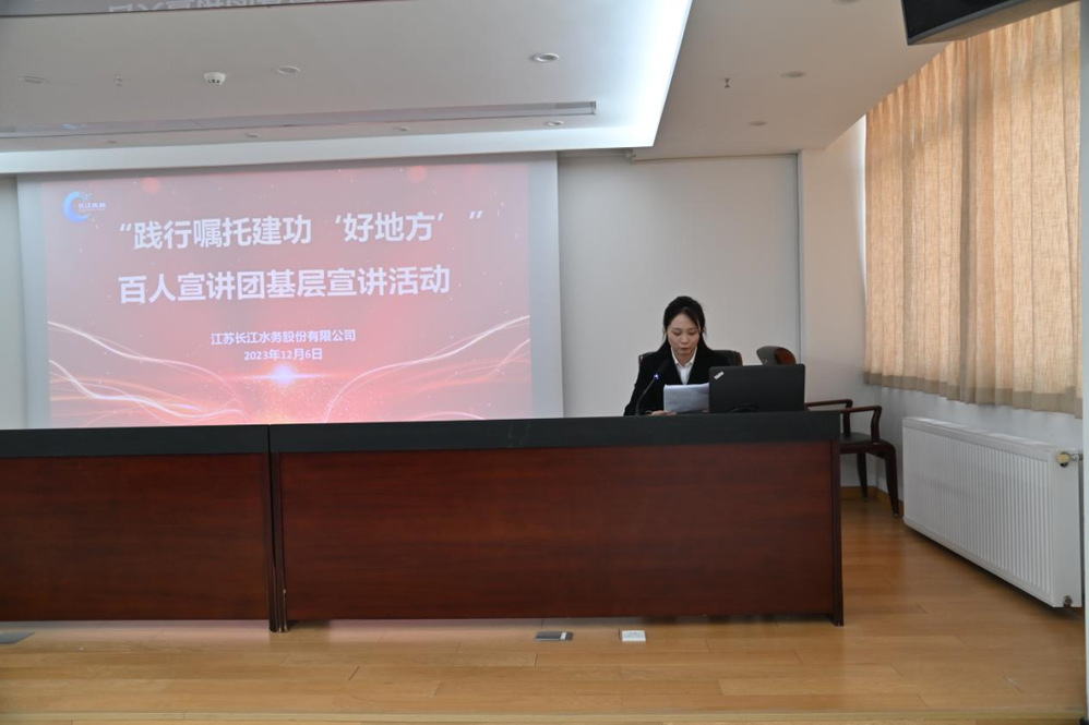 為深入學習貫徹習近平新時代中國特色社會主義思想,切實推動主題教育深入基層、走深走實,12月6日,長江水務開展“踐行囑托建功‘好地方’”百人宣講團基層宣講活動,公司領導班子、全體中層干部和部分職工代表參加了活動。