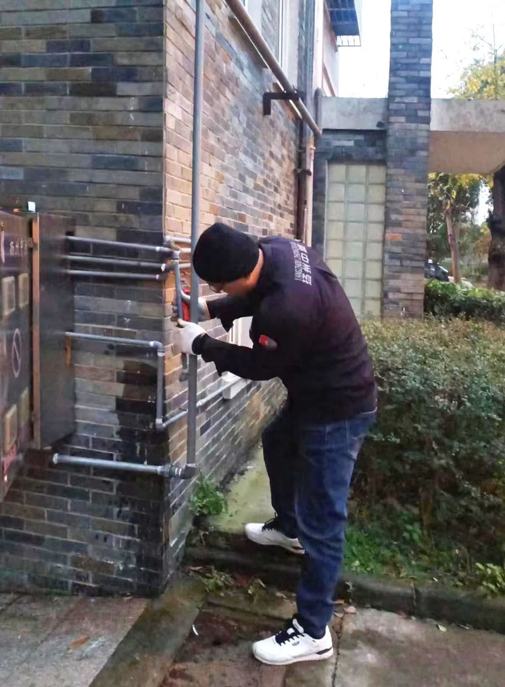 2023年12月10日,恰逢周日,當天上午,佳家花園65號樓棟居民打電話到揚州中燃公司客服熱線,報修家中燃氣無法使用。在班的客服部維修工周洋同志接到報修單后趕赴現場,經反復勘查,發現燃氣管道進水造成無法正常供氣,遂聯系了住在佳家花園的客服維修同事韋衛梁。“燃氣管道里面的水從哪兒來的?源頭在哪里?”,帶著這樣的疑問,兩位師傅在物業工作人員的配合下挨家挨戶排查,發現該樓棟402室置換的新熱水器水管接到了燃氣管內所致,告知戶主后,隨即關閉了該戶氣閥、水閥消除安全隱患。該樓棟共四個單元計48戶業主,燃氣表全部出戶統一安裝于一樓表箱內。在向客服部負責人報告后,兩位師傅結合現場實際情況,初步判斷行之有效的解決方案是逐一拆卸氣表和表后管道排水,沒有捷徑可行。