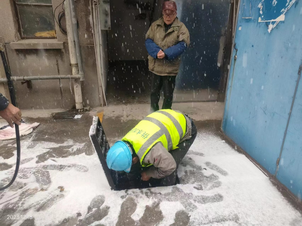 掀開(kāi)被積雪覆蓋著的井蓋,手拿扳手伸進(jìn)浸著冰水的井室,檢查用水設(shè)施……在張大爺家樓下,搶修人員安裝了20米長(zhǎng)的臨時(shí)供水管道,一直通到報(bào)修的沙中一村15棟207張大爺家里。