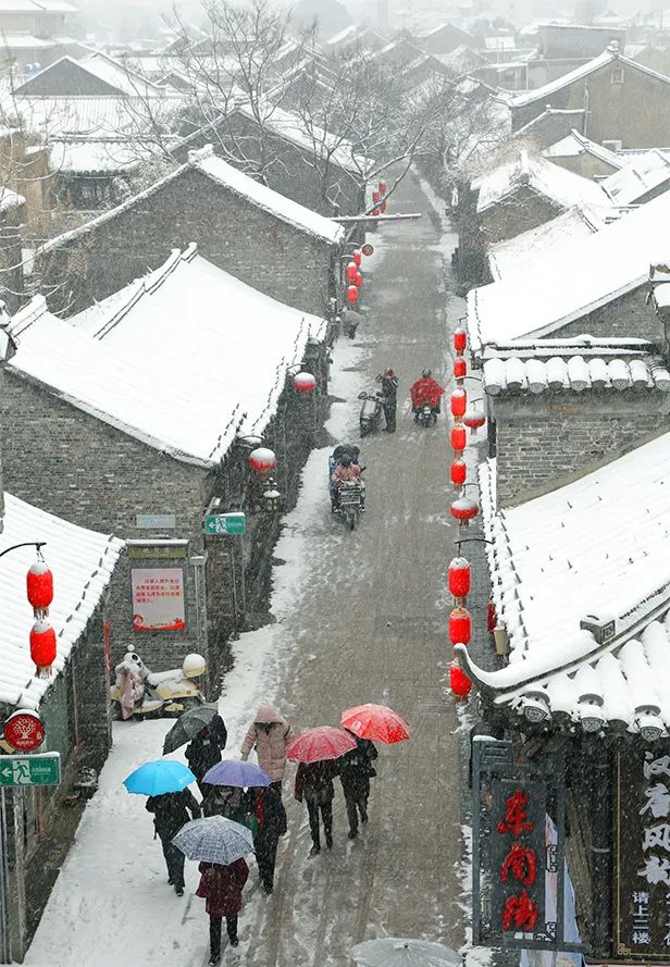 大雪紛紛揚揚覆蓋了揚州東關街。