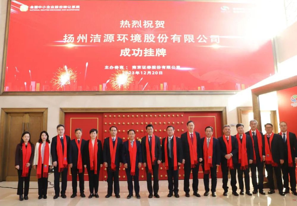 12月20日上午,潔源環(huán)境公司“新三板”掛牌儀式在北京證券交易所隆重舉行,揚州市委書記王進健出席儀式并致辭。市委常委、組織部長、秘書長焦慶標,副市長湯衛(wèi)華,市政府副秘書長裴東偉,廣陵區(qū)、市發(fā)改委、財政局、住建局、國資委、金融監(jiān)管局、稅務(wù)局、市城控集團主要負責人參加儀式。