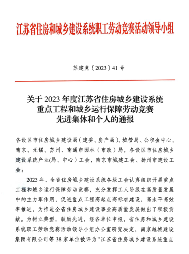 近日,萬福公司被授予 “2023年度省住建系統(tǒng)重點(diǎn)工程勞動(dòng)競賽先進(jìn)單位”榮譽(yù)稱號(hào)。