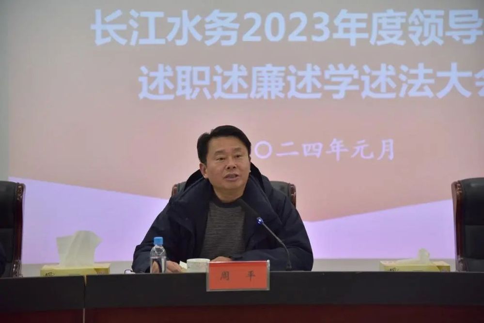 會上,城控集團黨委委員、長江水務公司黨委書記、董事長張正斌代表公司領導班子作2023年度述職述廉述學述法報告,代表公司黨委作2023年度干部選拔任用工作專題報告,并作個人述職述廉述學述法報告。長江水務公司黨委副書記、副董事長、總經理劉義忠作個人述職述廉述學述法報告,公司領導班子其他成員作書面述職述廉述學述法報告。與會人員對公司領導班子及成員2023年度履職情況、選人用人工作和新提拔的干部進行了民主評議。