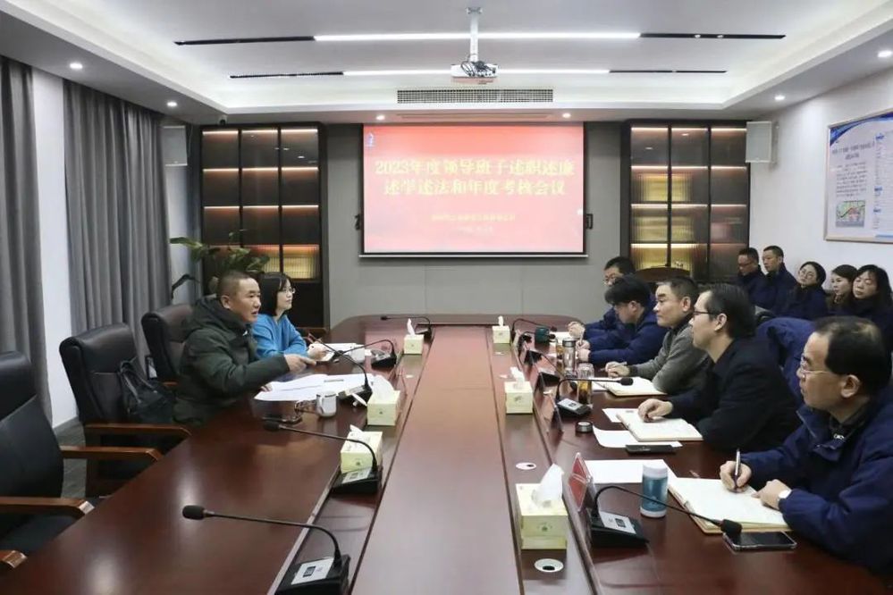 會上,公司主要負責人代表班子作述職述廉述學述法報告,并作個人述職述廉述學述法報告,班子其他成員作書面報告。會議對公司領導班子及成員進行了民主測評,并對2023年度選人用人工作進行了民主評議。