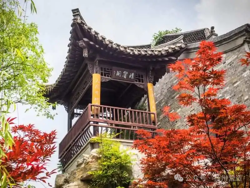 看山樓,顧名思義,站在樓頭,可以看到遠處的山岡。上得樓頭,登高遠眺,北郊蜀岡、江南諸峰,隱約可見。