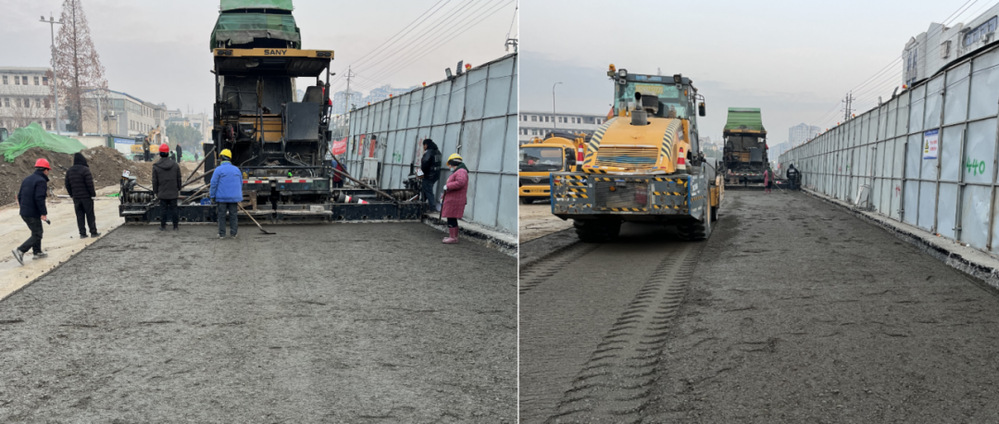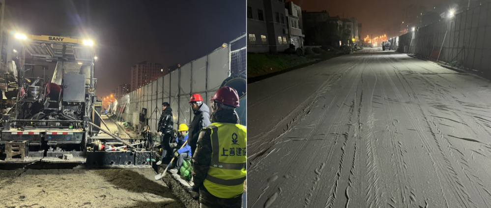 為了保證節前完成江都路三標主干道通車目標任務,上善公司加強組織協調,增派公司青年職工去施工一線監督,通過合理調配資源,嚴控進場材料質量,加強施工技術交底等方法,嚴把施工安全質量關,確保西側快車道水穩攤鋪安全、質量、進度受控,按照既定計劃順利完成路面攤鋪。