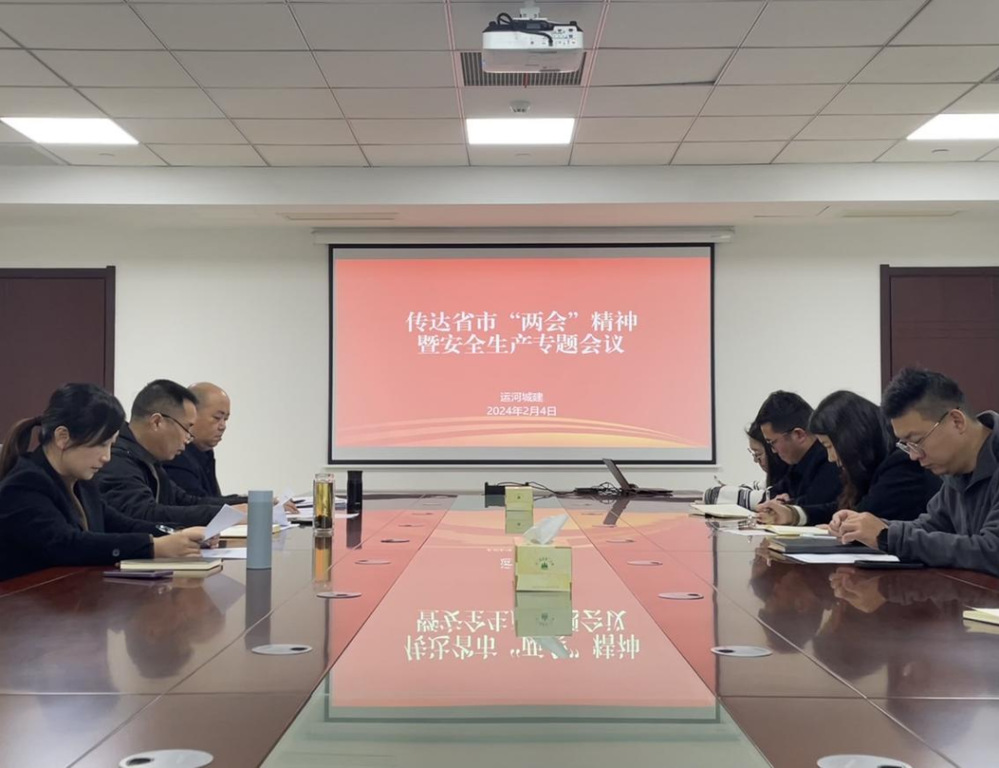 2月4日下午,運(yùn)河城建公司召開傳達(dá)省、市“兩會”精神暨2024年安全生產(chǎn)專題會,公司領(lǐng)導(dǎo)班子、中層干部參加會議。