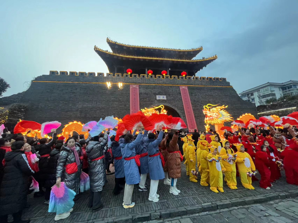 行進(jìn)路線沿途,觀眾紛紛駐足觀看,拍照留念。游街方陣一路經(jīng)過東關(guān)街的主要街道,最終抵達(dá)東城門。在這里,一場盛大的亮燈儀式等待著他們。