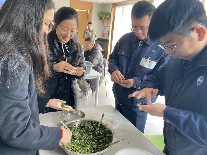 活動現場,公司全體職工積極參與,現場氣氛十分熱烈,大家紛紛擼起袖子拿出自己的“看家本領”,和面、拌餡、搟面皮、包餃子......大家彼此配合默契,包餃子的同時,大家猜猜燈謎、訴家常,整個餐廳充滿了歡聲笑語,處處洋溢著溫馨的氛圍。