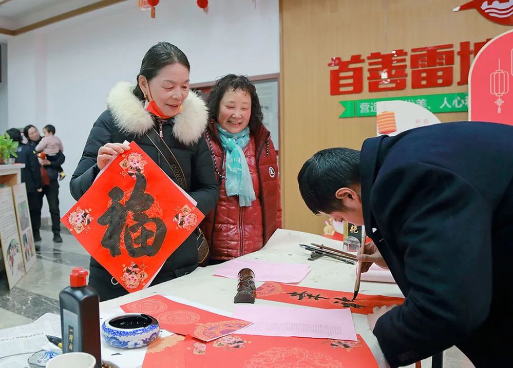 俗話說:無聯不成春,有聯春更濃。春聯送的是祝福,暖的是人心,讓群眾們切實感受到中國傳統文化獨特魅力和節日溫情,共享文化志愿服務的惠民新成果。兩場活動累計為群眾送出了200多張“福”字、100多副春聯作品。