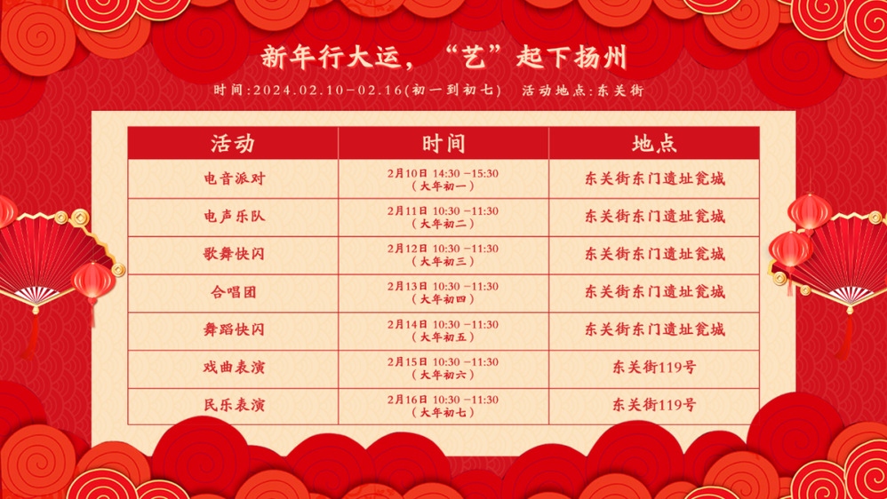 大年初一,揚州東關街東門一片歡騰,《“新年行大運,藝起下揚州”電音派對》活動于下午2:30在這里盛大開幕,為市民和游客帶來了別樣的新年體驗。