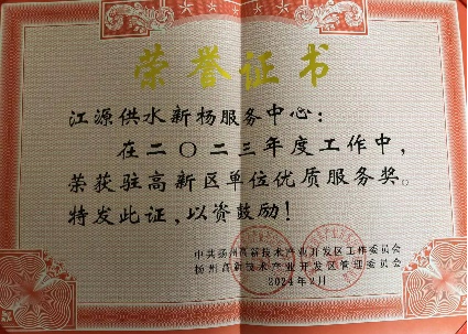 過去一年,長江水務江源公司在優化營商環境、提升對外服務質量方面取得了顯著工作成效,杭集、方巷、槐泗、楊廟、汊河、甘泉等6家網點于近日分別榮獲優質服務單位榮譽稱號。
