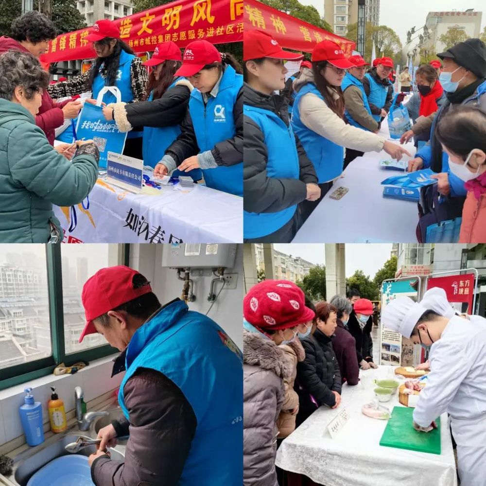 在文昌花園社區(qū)中心廣場(chǎng),來(lái)自城控集團(tuán)本部、市民卡公司、長(zhǎng)江水務(wù)、揚(yáng)州中燃、揚(yáng)州供熱、名城公司和文昌花園社區(qū)的志愿者們,現(xiàn)場(chǎng)設(shè)立服務(wù)臺(tái),熱情為居民宣傳講解市民卡充值、水氣繳費(fèi)、水氣報(bào)裝/過(guò)戶(hù)等方法和操作流程;提供公交卡充值和卡套免費(fèi)更換、燃?xì)馊霊?hù)安檢、自來(lái)水上門(mén)檢測(cè)、小區(qū)內(nèi)部管網(wǎng)測(cè)漏以及預(yù)約登記等惠民服務(wù);廚師志愿者免費(fèi)提供代剁肉泥、切干絲等便民服務(wù),居民紛紛點(diǎn)贊志愿者愛(ài)心行為。