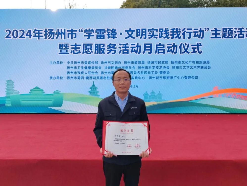 在“3.5”學(xué)雷鋒紀(jì)念日到來(lái)之際,江蘇長(zhǎng)江水務(wù)股份有限公司龐飛龍同志被揚(yáng)州市委宣傳部、揚(yáng)州市文明辦授予“揚(yáng)州市崗位學(xué)雷鋒標(biāo)兵”。