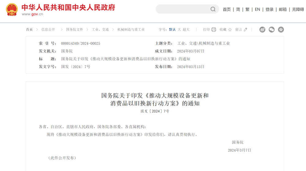 現(xiàn)就推動新一輪大規(guī)模設備更新和消費品以舊換新,制定如下行動方案。