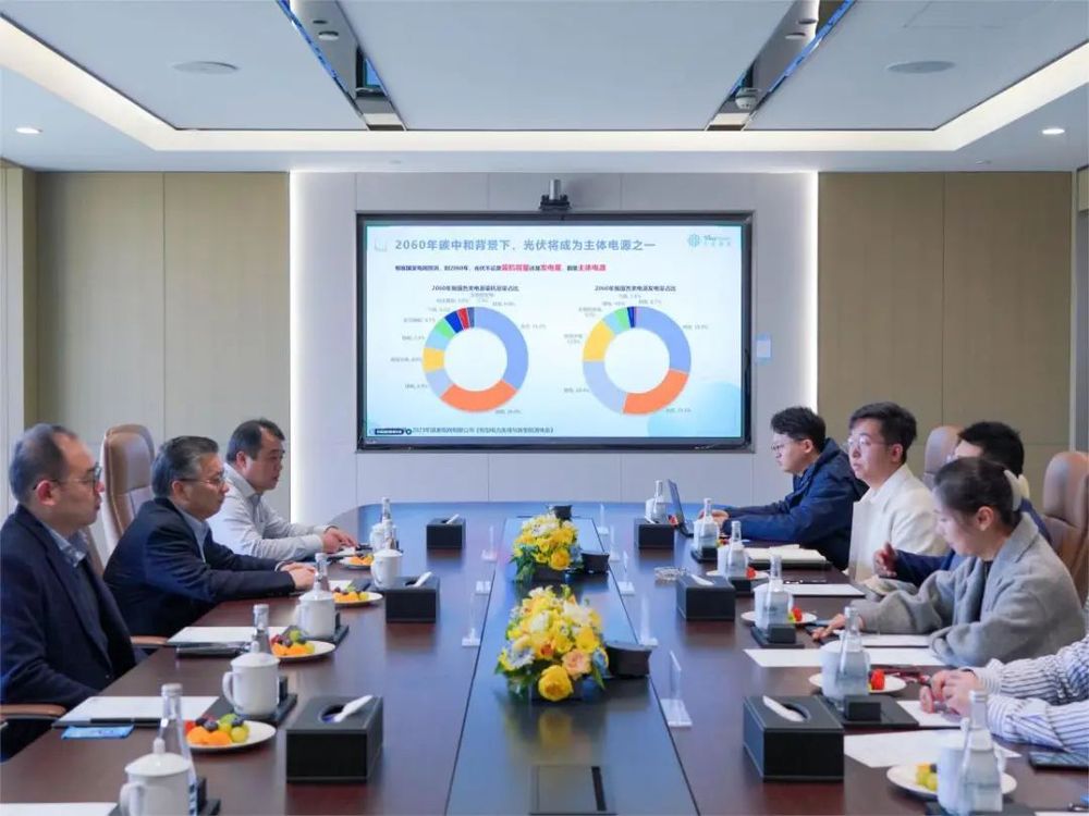 會上,天合富家副總裁、運營中心負責人蒲楓對孔德存一行表示了熱烈歡迎,并介紹了分布式光伏行業趨勢及投資前景。他表示,分布式行業前景具有高度確定性,前景清晰,希望盡快與能源集團達成合作,促進雙方合作共贏。