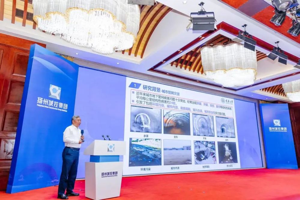 會議舉行了揭牌授牌儀式,揚能新能源公司、江蘇管網科技有限公司、水務智能感知與優化聯合創新中心、城市智慧水務發展研究中心、校級研究生工作站、東關街產學研基地正式揭牌。王建國、劉漢龍2位院士被聘請揚州城控集團專家委員會專家。