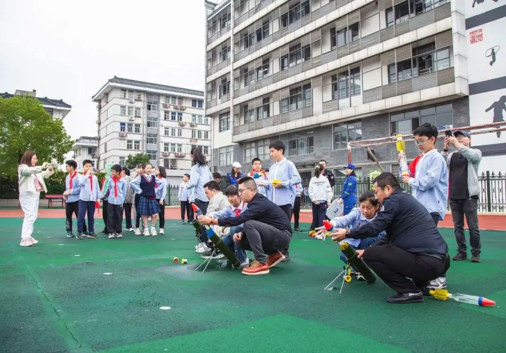 在這場專為1000名師生打造的科普盛宴中,揚州中燃藍焰志愿者根據安排負責室外“水火箭迫擊炮”項目。為了讓學生們有更好地體驗感受,藍焰志愿者們當天6:50就來到校園開展準備工作,在揚州北藍救援隊專業人員指導下,熟悉掌握操作流程。隨著科技節的啟動,大家各司其職、恪守安全要領,有的負責填充注水、有的負責打氣增壓、有的負責裝“彈”射擊,確保整個活動有條不紊?!翱萍即嬖诜殴獠?,人人爭相為此來”。學生們在志愿者的指導下,體驗了“水火箭迫擊炮”發射的整個過程,同時也了解了“空氣的作用力和反作用力”的實驗原理,每一發“火箭彈”的成功發射都引來陣陣哇噻聲。至中午12時許,活動圓滿結束,藍焰志愿者用行動在孩子們心中撒下科學的種子,營造出了熱愛科學、崇尚科學的氛圍。