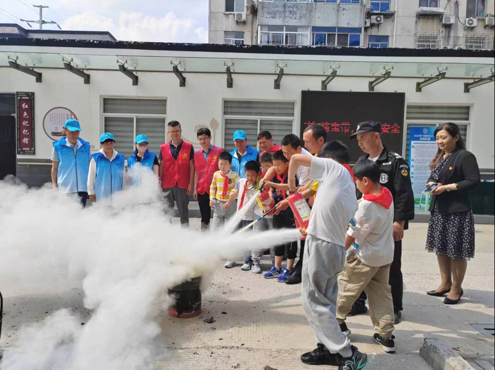 結合“安全生產月”主題內容,長江水務“水質安全衛士”、市應急管理執法局黨支部志愿者們與寶帶社區共同邀請了花園小學的同學們來到端午節活動現場,在豐富他們課余生活的同時,指導同學們完成了一次消防演練。