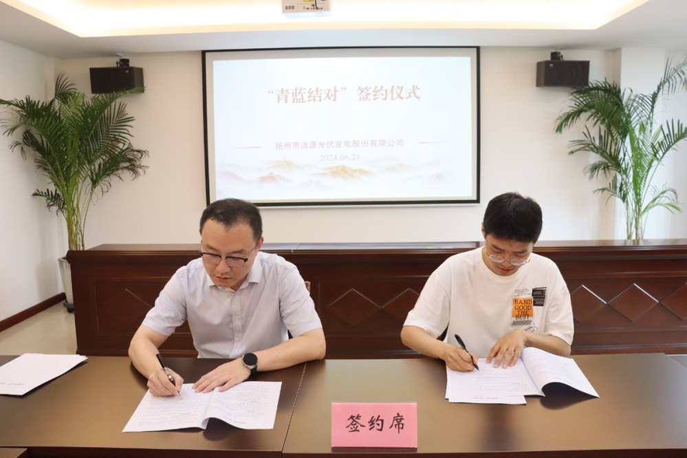 為進(jìn)一步加強(qiáng)青年人才隊(duì)伍建設(shè),營(yíng)造互學(xué)互助、團(tuán)結(jié)協(xié)作的良好氛圍,6月21日下午,潔源光伏公司舉行“青藍(lán)結(jié)對(duì)”簽約活動(dòng),公司領(lǐng)導(dǎo)班子成員、相關(guān)部門(mén)負(fù)責(zé)人和結(jié)對(duì)師徒參加活動(dòng)。