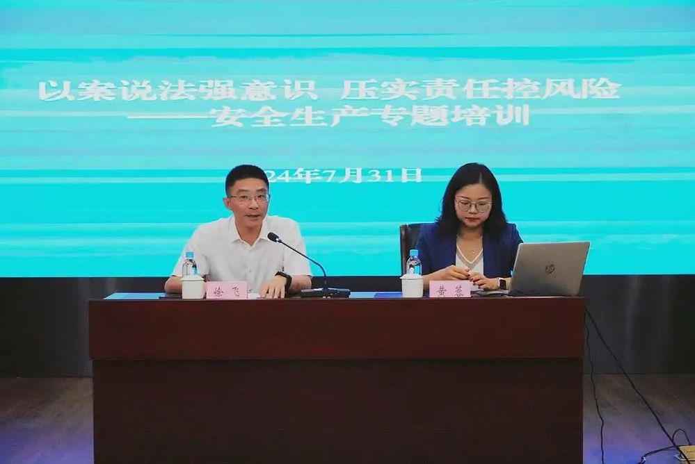 為進(jìn)一步管控風(fēng)險(xiǎn),壓實(shí)安全責(zé)任,筑牢安全防線。7月31日下午,城控集團(tuán)組織開展安全生產(chǎn)培訓(xùn),宣貫《江蘇省生產(chǎn)經(jīng)營單位安全風(fēng)險(xiǎn)管理?xiàng)l例》,講授安全生產(chǎn)知識(shí)。集團(tuán)黨委副書記徐飛主持活動(dòng)并講話,集團(tuán)企管部相關(guān)人員,各單位主要負(fù)責(zé)人、安全生產(chǎn)分管負(fù)責(zé)人和安全生產(chǎn)職能部門負(fù)責(zé)人共60余人參加活動(dòng)。