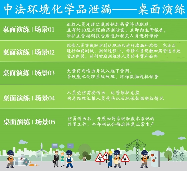為進一步提升公司職工在應對突發環境事件時的應急響應能力,最大限度減少損失和影響,8月13日下午揚州中法環境組織開展了化學品泄漏桌面推演活動,公司運營維護部、技術部、安環部、綜合部參加活動。