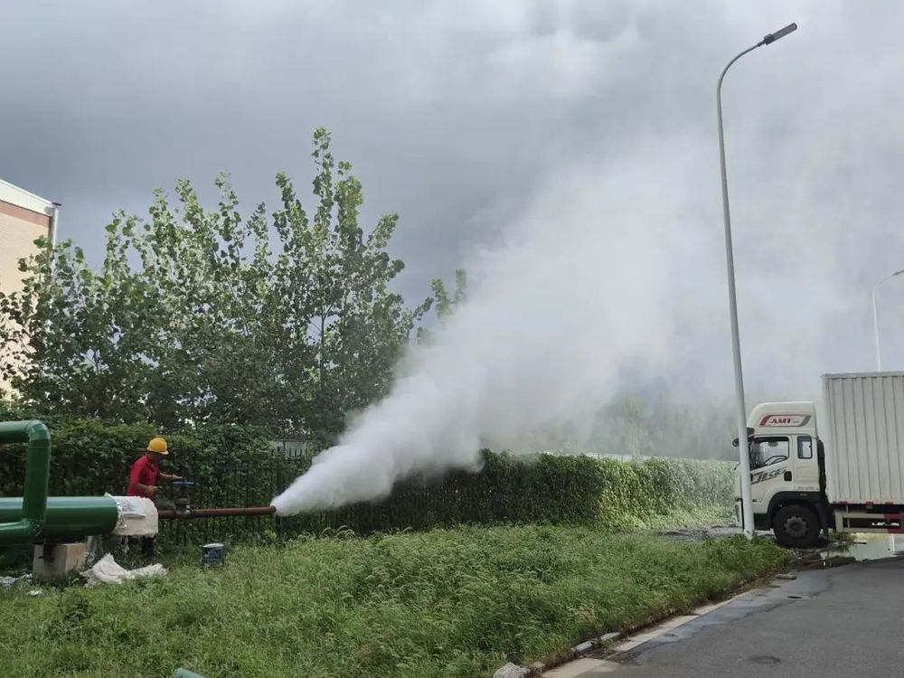 9月19日下午3時,隨著一聲轟鳴,高壓蒸汽騰空而起,瞬間彌散開來。湯汪科技創業園供熱工程順利完成管道吹掃工作,標志著該段管道具備正式通汽條件。