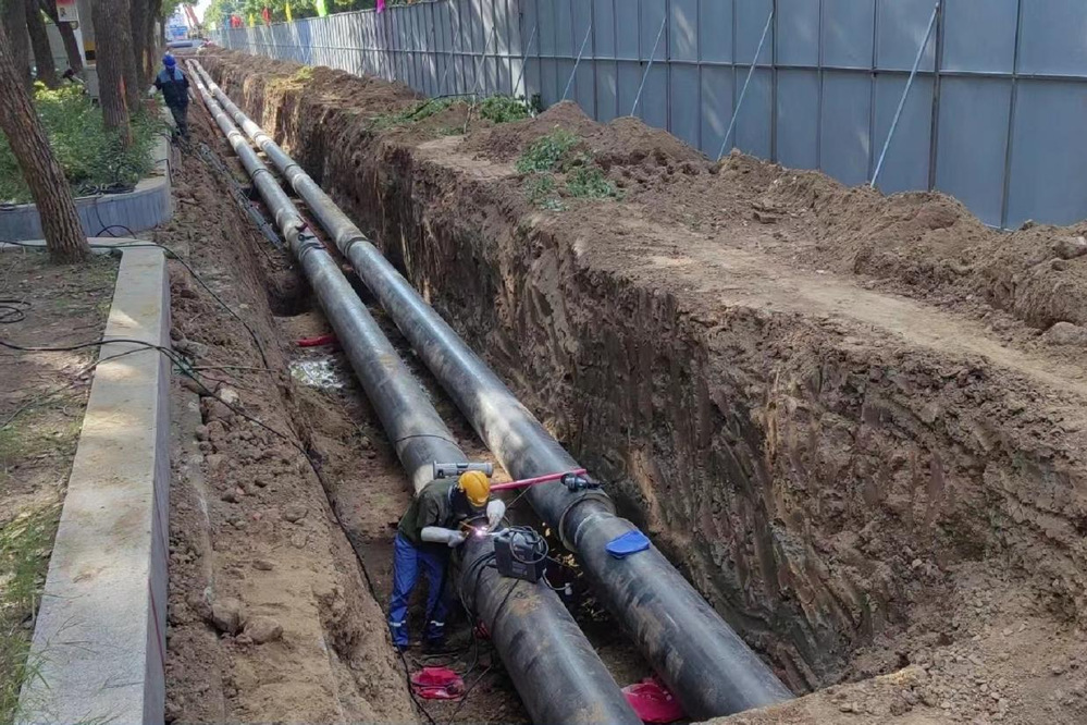 目前,熱力站拆除工作已全部完成,主體鋼架正陸續搭建,沿線管網的路面破碎、溝槽開挖、支墩灌注、桁架鋪設、管道焊接等工作嚴格按照施工計劃有序推進,總體進度順利,達到了預期效果。