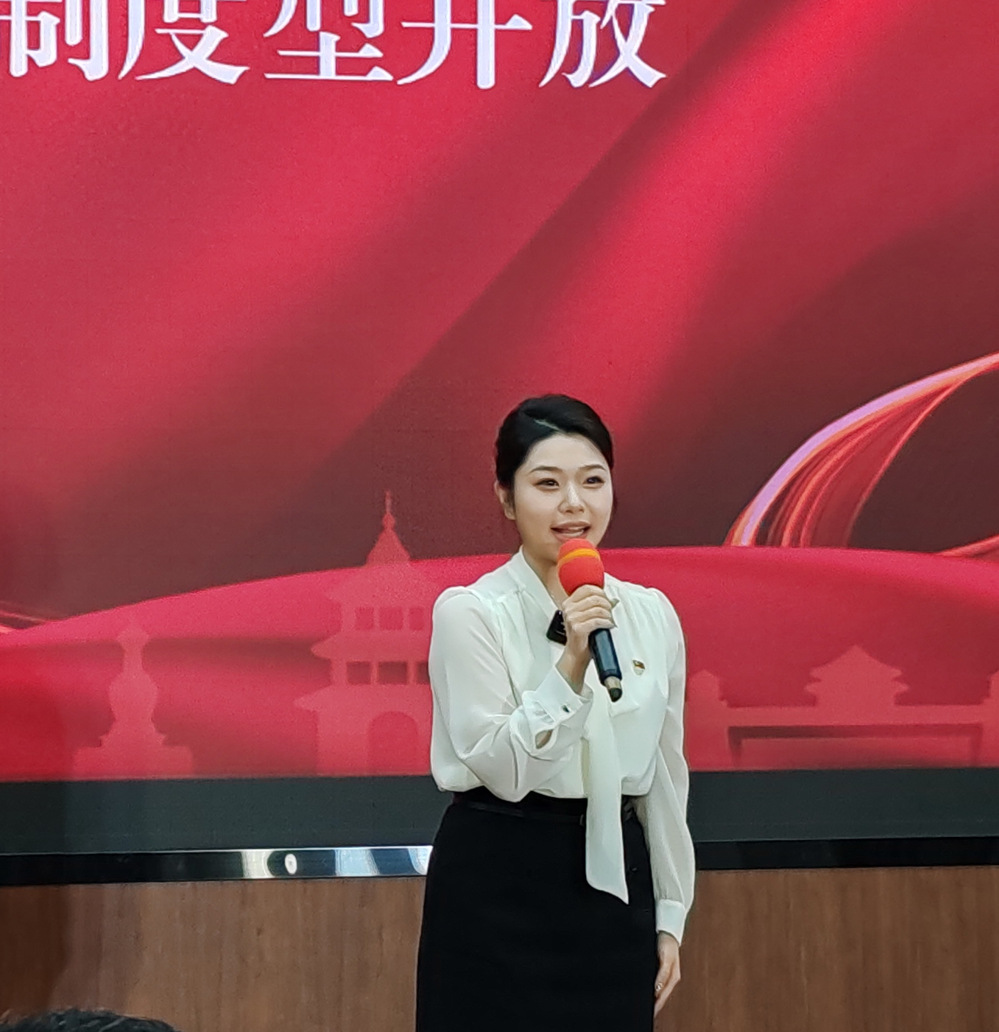 比賽分為“主題宣講”和“即興宣講”兩個(gè)環(huán)節(jié)。“主題宣講”環(huán)節(jié),12名參賽選手圍繞“筑夢(mèng)現(xiàn)代化 共繪新圖景”主題進(jìn)行6分鐘宣講。陳皓雅以《“河”以揚(yáng)州》為題,緊緊圍繞大運(yùn)河原點(diǎn)城市建設(shè),講述了城控集團(tuán)牢記習(xí)近平總書(shū)記殷殷囑托,傳承與發(fā)展運(yùn)河文脈,積極融入大運(yùn)河文化帶建設(shè),致力于城市基礎(chǔ)設(shè)施更新、古城保護(hù)與活化利用、民生幸福工程建設(shè),展現(xiàn)了城控集團(tuán)與城市共生息,擘畫(huà)人河相融的城市高質(zhì)量發(fā)展藍(lán)圖的時(shí)代擔(dān)當(dāng)。“即興宣講”環(huán)節(jié),陳皓雅圍繞“穩(wěn)步擴(kuò)大制度型開(kāi)放”關(guān)鍵詞,結(jié)合黨的二十屆三中全會(huì)精神和城控集團(tuán)穩(wěn)步推進(jìn)國(guó)企深化改革進(jìn)行了2分鐘即興宣講。今年以來(lái),城控集團(tuán)在市委、市政府的堅(jiān)強(qiáng)領(lǐng)導(dǎo)下,深入學(xué)習(xí)貫徹黨的二十屆三中全會(huì)精神,精心組織“我是黨課主講人”活動(dòng),持續(xù)強(qiáng)化黨建引領(lǐng),推動(dòng)黨建工作與生產(chǎn)經(jīng)營(yíng)同頻共振,以高質(zhì)量黨建護(hù)航企業(yè)高質(zhì)量發(fā)展。