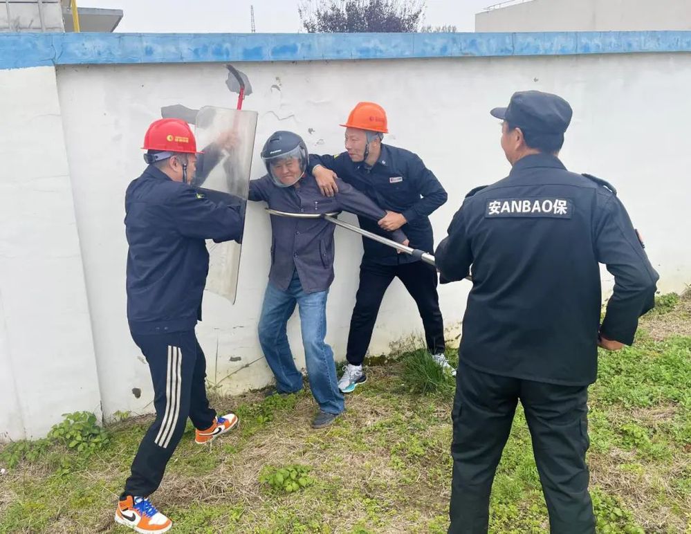 第二階段模擬恐怖分子持械進入場站。門衛在發現不明人員意圖進入場站,按照反恐應急處置流程,迅速電話報警,并組織人員,使用防暴器械,與門衛人員一同制服該名恐怖分子,等待警方處置。