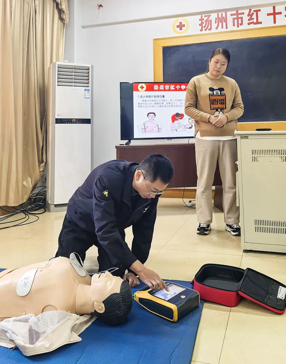 本次培訓采取理論授課和實操練習相結合的方式,由揚州市紅十字會衛生培訓中心師資團隊進行授課。培訓歷時8個課時,課程涵蓋了心肺復蘇(CPR)、止血包扎、骨折固定、海姆立克急救法、自動除顫器(AED)使用等急救知識。培訓過程中,揚州中燃志愿者認真學習了解醫療救護知識,在專業老師指導下,逐一進行互動體驗和研習。揚州中燃公司8名志愿者全部通過理論和實踐考核,取得揚州市紅十字會頒發的初級救護員合格證。