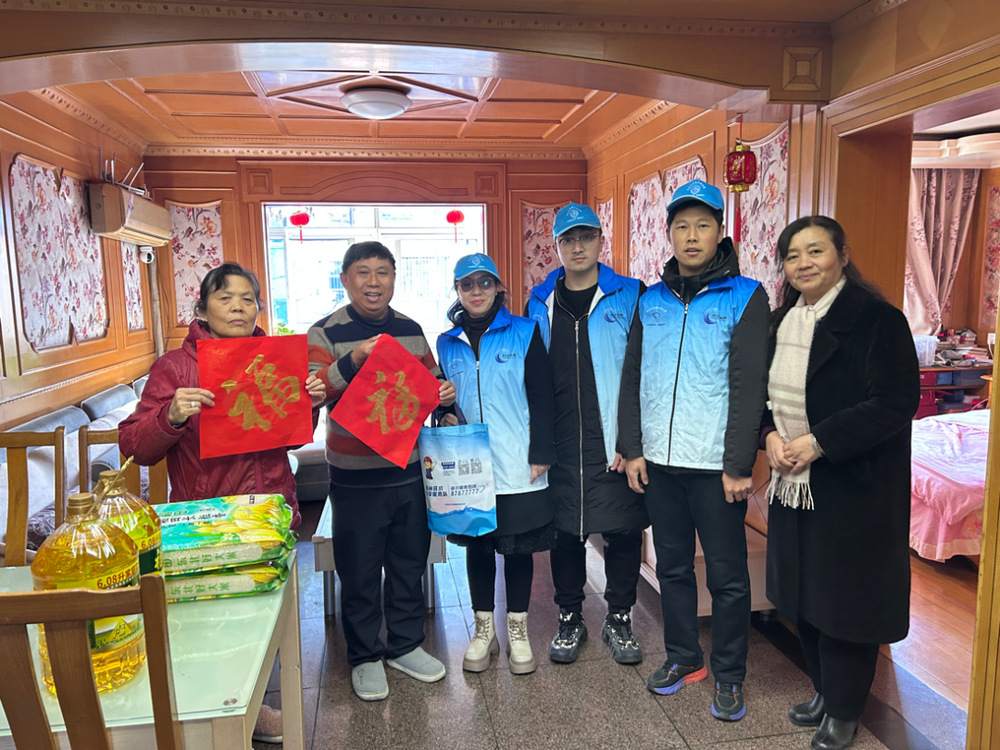 隨后,“水質安全衛士”志愿者們來到社區困難黨員群眾的家中,為他們提前送上“?!弊趾痛竺住⑹秤糜偷葠坌奈镔Y。每到一戶,志愿者們都關切詢問他們的身體和生活狀況,傾聽困難與需求,未來將定期走訪、提供幫助,并祝福他們能夠度過一個歡樂祥和的春節。受助群眾十分感謝社區工作者與“水質安全衛士”志愿者們給他們帶來的關心和幫助,讓他們在寒冷的冬季也能感受到節日的溫馨和社會的溫暖。