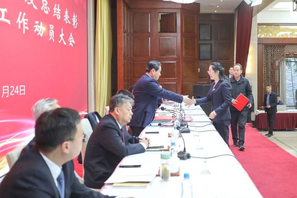 會議還表彰了2024年度先進單位、突出貢獻單位、先進集體、先進個人;2024年度安全生產先進單位、先進集體、先進個人;2024年優質服務先進單位、先進班組和先進個人。各部室、各單位主要負責人向張思忠董事長遞交了2025年經營管理目標責任書、黨建和精神文明建設目標責任書、黨風廉政建設責任書和安全生產目標責任書。計財部、城建置業公司、長江水務公司、市政管網公司分別作了表態發言。