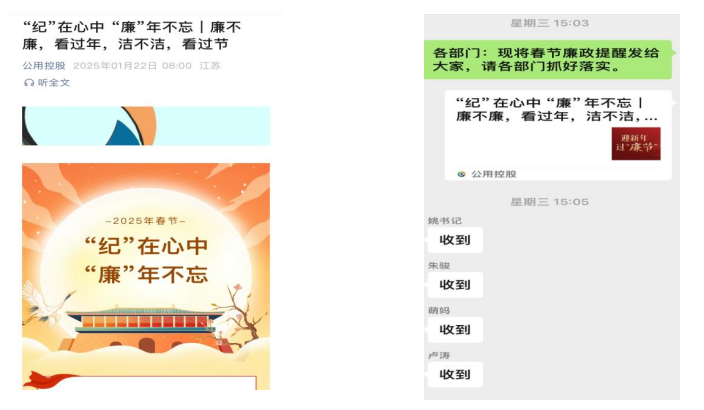 廉潔提醒在強(qiáng)化廉潔意識、預(yù)防腐敗行為、促進(jìn)公正與公平、維護(hù)組織形象以及推動社會進(jìn)步等方面都具有重要意義。公用控股公司發(fā)布節(jié)前廉潔提醒,通過公司公眾號、微信工作群等發(fā)送廉潔提醒信息,引導(dǎo)干部職工過節(jié)不忘紀(jì)律、不忘規(guī)矩、守住底線、勿觸紅線,共同營造一個廉潔文明、歡樂祥和的節(jié)日氛圍。下一步,公用控股公司將持續(xù)做優(yōu)以上“3”個固定動作,不斷拓展廉政教育模式的內(nèi)涵與外延,努力構(gòu)建“3+N”廉政教育模式,強(qiáng)化節(jié)前廉政教育成效,確保節(jié)日期間風(fēng)清氣正,為公司高質(zhì)量發(fā)展提供堅強(qiáng)的組織保障。
