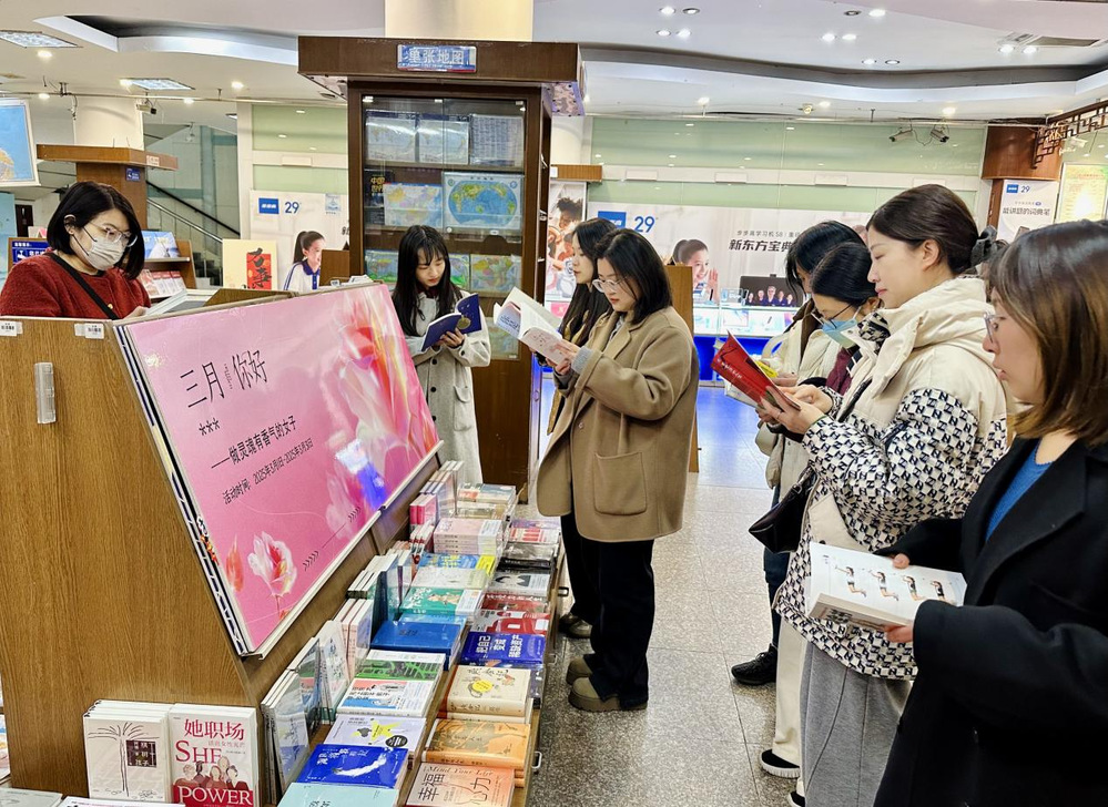 女職工們來到新華書店,在三月女性專欄閱讀了《職場幸福力》《陽光心態(tài)》等相關(guān)書籍,沉浸其中,閱讀后大家相互分享閱讀經(jīng)驗,交流心得感悟。并集中觀看了巾幗榜樣人物的偉大事跡,她們用奮斗寫下屬于這個時代的巾幗榮光,向“她”力量致敬。