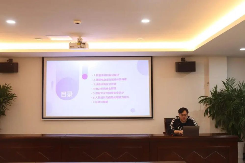 公司員工圍繞“新能源儲能電站運維管理”主題,結合新能源儲能電站發展現狀及趨勢,從設備設施安全管理、電力系統安全管理等方面,講解了新能源儲能電站安全運維要點、電網接入及并網調度規范、遠程監控平臺安全防護等安全運維知識,為大家展現了一堂生動有趣、內容豐富的安全教育課。