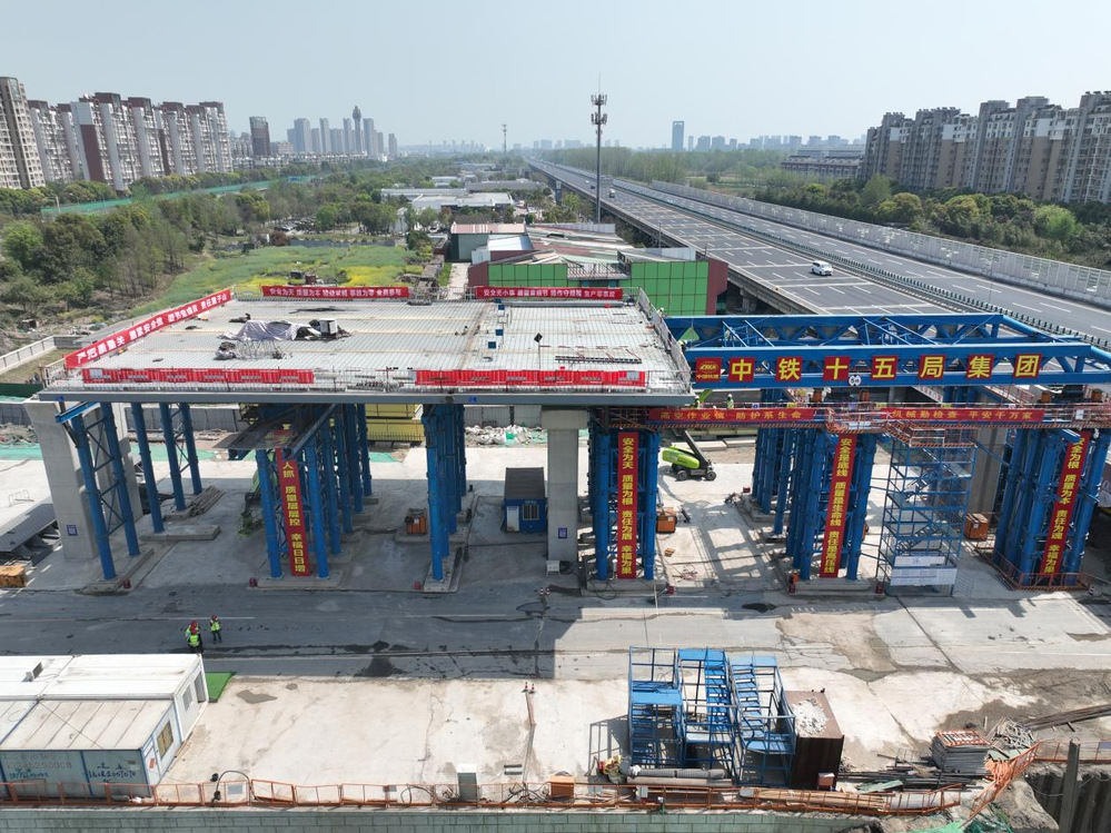 該段鋼箱梁全長112米,整幅寬度25.66米,主跨長度60m,整橋重量達1950噸,采用“步履式頂推”工藝,施工過程中無需中斷下方交通通行,可最大程度減少對社會交通的影響。此次鋼箱梁頂推持續(xù)時間預計2個月左右。
