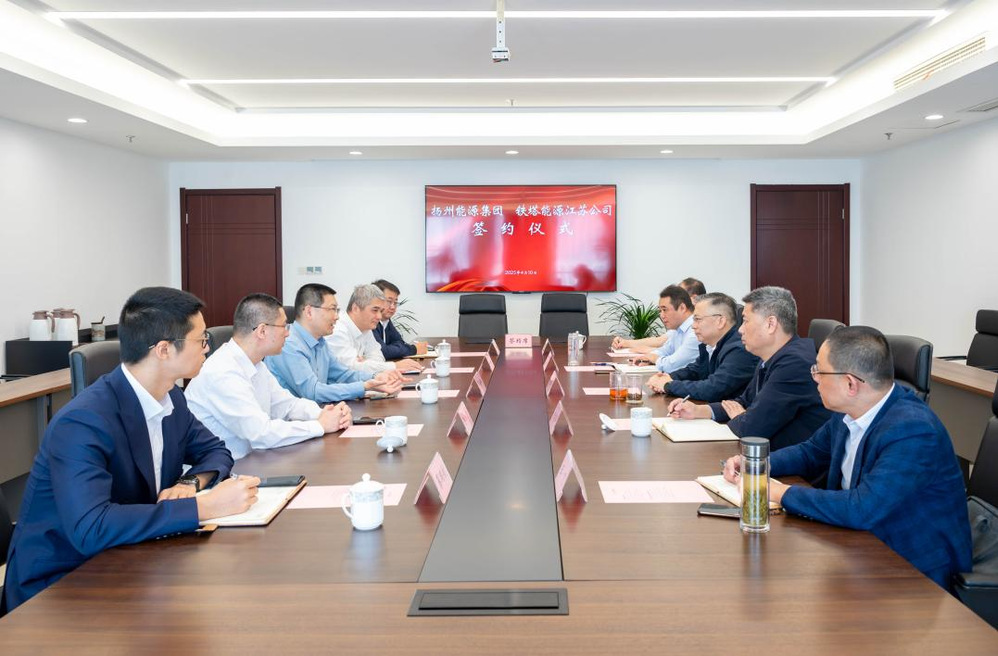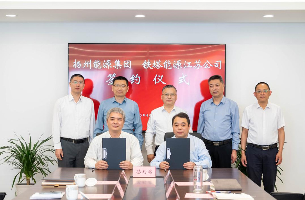 4月10日上午,能源集團與鐵塔能源江蘇公司正式簽署戰略合作框架協議。鐵塔能源江蘇公司總經理夏海鯨、副總經理張兆軍,揚州鐵塔副總經理陳飛,城控集團副總經理、能源集團董事長孔德存,各方相關人員參加簽約儀式。
