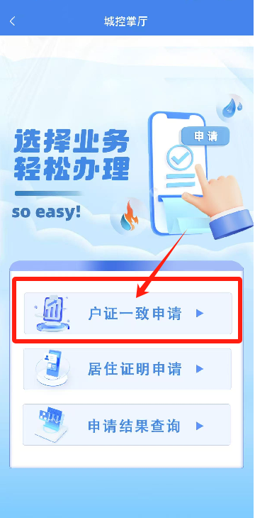選擇“戶證一致申請”模塊,選擇辦理業務。