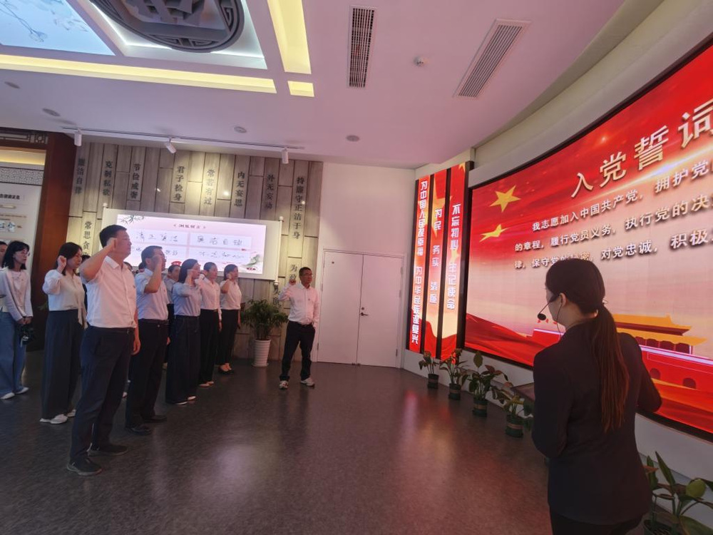 在講解員的引導下,黨員干部先后參觀了自我革命、正風反腐、明案鑒心、行穩致遠4個主題展區。各展區通過詳實的文字記述、真實的視頻影像以及沉浸式體驗場景等方式,深刻剖析了黨員干部違紀違法犯罪的典型案例。參觀結束后,全體黨員重溫入黨誓詞,在誓詞的回響中,黨員們再次堅定了永葆清廉本色的決心。