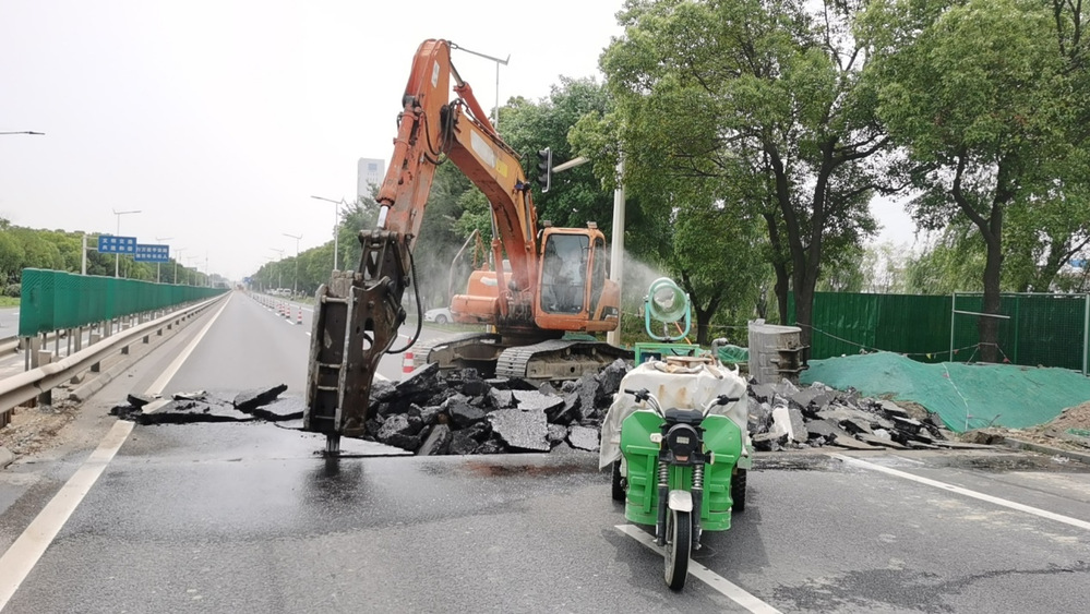 施工現(xiàn)場劃分為南北兩階段,采用“日間備料、夜間突擊”模式,履帶式破碎機對原路面分層切割破除后,同步啟動鋼板樁支護,施工人員輪班施工作業(yè)。面對溝槽深度近4米、毗鄰通行車道等風險,安全員全程旁站監(jiān)督,每30分鐘巡查支護結(jié)構(gòu)穩(wěn)定性。