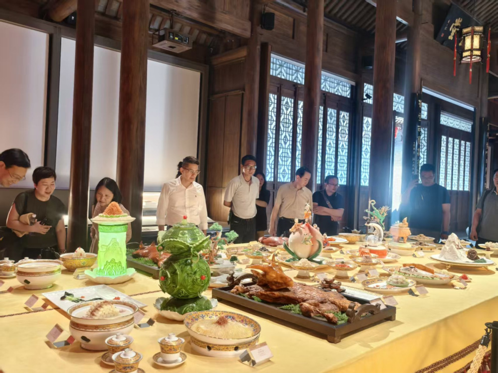 莫清一行首先了解了街區(qū)的地域特點(diǎn)、業(yè)態(tài)布局以及街區(qū)提改升級的理念等基本情況;隨后,參觀了淮揚(yáng)菜博物館、唐朝詭事錄VR劇場;還在街區(qū)的美食市集體驗(yàn)了揚(yáng)州獅子頭、揚(yáng)州炒飯等經(jīng)典美食的制作。