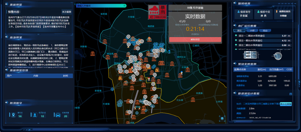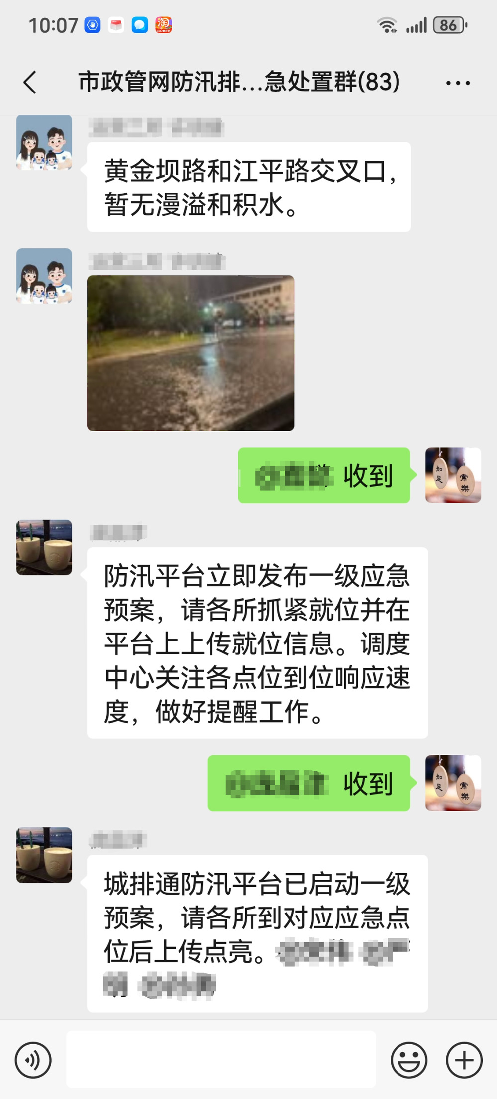 6月6日開(kāi)始,各相關(guān)部門(mén)已根據(jù)天氣預(yù)警按照統(tǒng)一部署和既定安排開(kāi)展污水設(shè)施加密巡查,部署好應(yīng)急人員、物資隨時(shí)待命。6月7日凌晨3時(shí)23分氣象部門(mén)發(fā)布暴雨藍(lán)色預(yù)警后,公司立即通過(guò)“城排通”系統(tǒng)啟動(dòng)應(yīng)急預(yù)案,快速落實(shí)污水設(shè)施、雨水排口、易積水點(diǎn)和在建工程現(xiàn)場(chǎng)的巡查和應(yīng)急處置工作。由于突降暴雨,市區(qū)部分道路很快出現(xiàn)積水,且涉及多個(gè)高考考點(diǎn)周邊,情況十分緊急,與此同時(shí)氣象部門(mén)緊急升級(jí)發(fā)布暴雨黃色預(yù)警。為及時(shí)做好處置,公司第一時(shí)間調(diào)整了應(yīng)急響應(yīng)等級(jí),通過(guò)“城排通”系統(tǒng)實(shí)時(shí)監(jiān)測(cè)運(yùn)行數(shù)據(jù),加強(qiáng)信息共享和部門(mén)間應(yīng)急聯(lián)動(dòng),適時(shí)調(diào)整運(yùn)行調(diào)控策略,對(duì)發(fā)現(xiàn)的路面積水險(xiǎn)情,迅速指揮、調(diào)度搶險(xiǎn)班組和物資開(kāi)展應(yīng)急排澇。