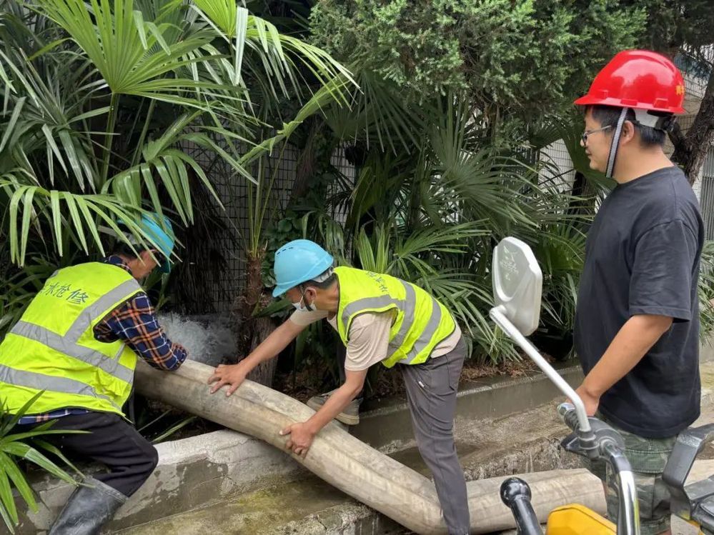 隨著監控人員發現險情并報告指揮組,演練正式啟動。應急指揮組迅速啟動防汛預案,各小組按分工火速行動:物資保障組第一時間將沙袋、排水泵等物資運送至現場,在配電房周邊構筑防水圍堰,防止積水倒灌;技術搶修組穿戴絕緣裝備,熟練操作多功能搶修車連接應急電源,啟動大功率排水泵實施快速抽排,全力保障配電設備安全;水質監測組同步開展水質檢測,確保供水水質達標。