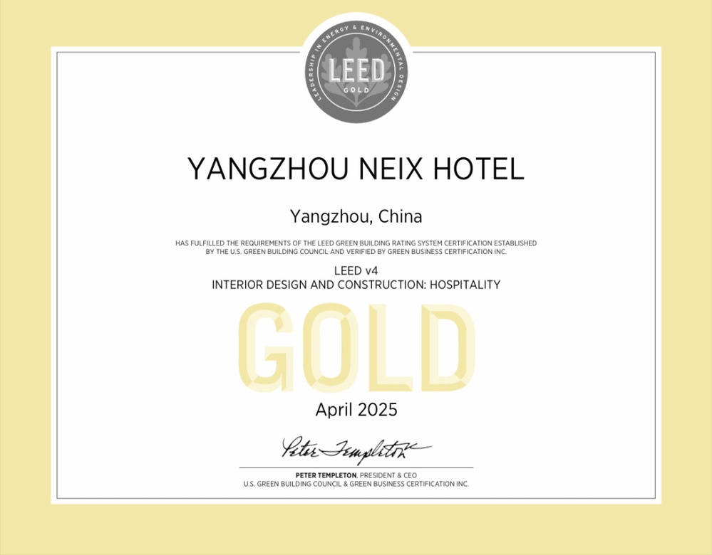 今天的LEED金級認(rèn)證,是對項目全周期“綠色基因”的最佳注腳。從規(guī)劃設(shè)計階段對節(jié)能材料的選用,到建設(shè)過程中對施工污染的嚴(yán)控、資源循環(huán)利用的實(shí)踐;從酒店運(yùn)營中低碳管理的探索、綠色服務(wù)的創(chuàng)新,到對“綠色建筑”理念的堅守與投入,每一步都凝聚各方的專業(yè)指導(dǎo)和技術(shù)支持,對街區(qū)綠色運(yùn)營的深耕。
