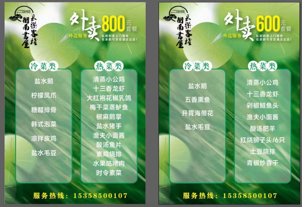 酒店打破傳統(tǒng)用餐場景限制,除了推出門店外賣,還推出了外賣套餐配送和外賣家廚上門的服務。只需提前撥打預約電話,酒店隨即閃送上門或由廚師攜食材上門現(xiàn)場烹飪,讓您足不出戶體驗舌尖上的美味,坐擁私宴級體驗。